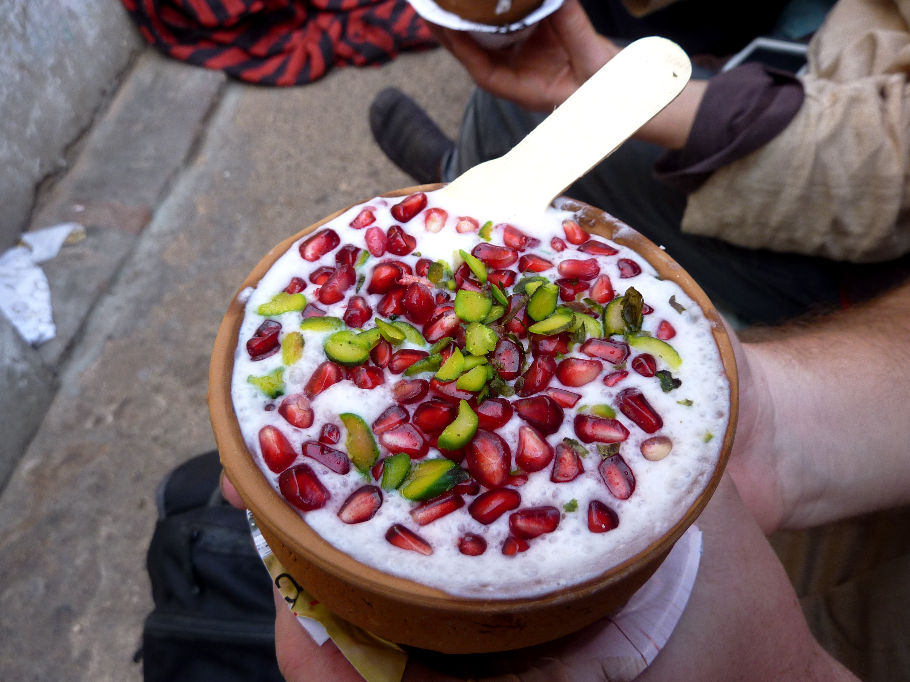 Eating what was far and away the best lassi (topped with pistachios and pomegranate seeds) I’ve ever had from atop a rooftop of a small hut while aggressive monkeys circled about and bodies bound for Manakarnika passed by in the pathway below…