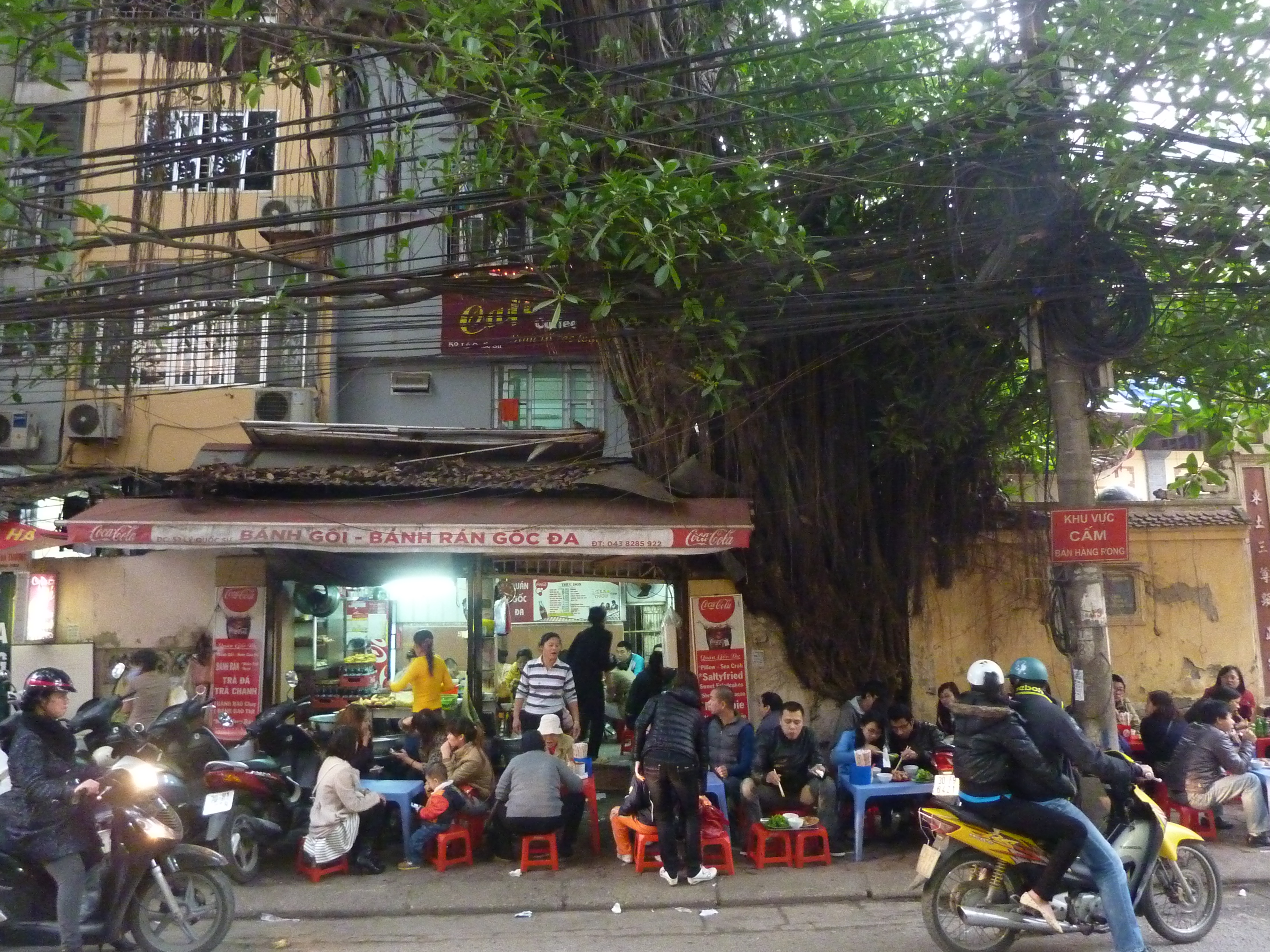 Most afternoons involved a break or two at one of the many simple sidewalk cafes found all over the Old Quarter where I would watch the world go by while sipping a wonderfully strong coffee served up with sweetened condensed milk. When served over ice they are known as a ca phe sua da and when served piping hot, a ca phe sua nong. They are delicious either way.