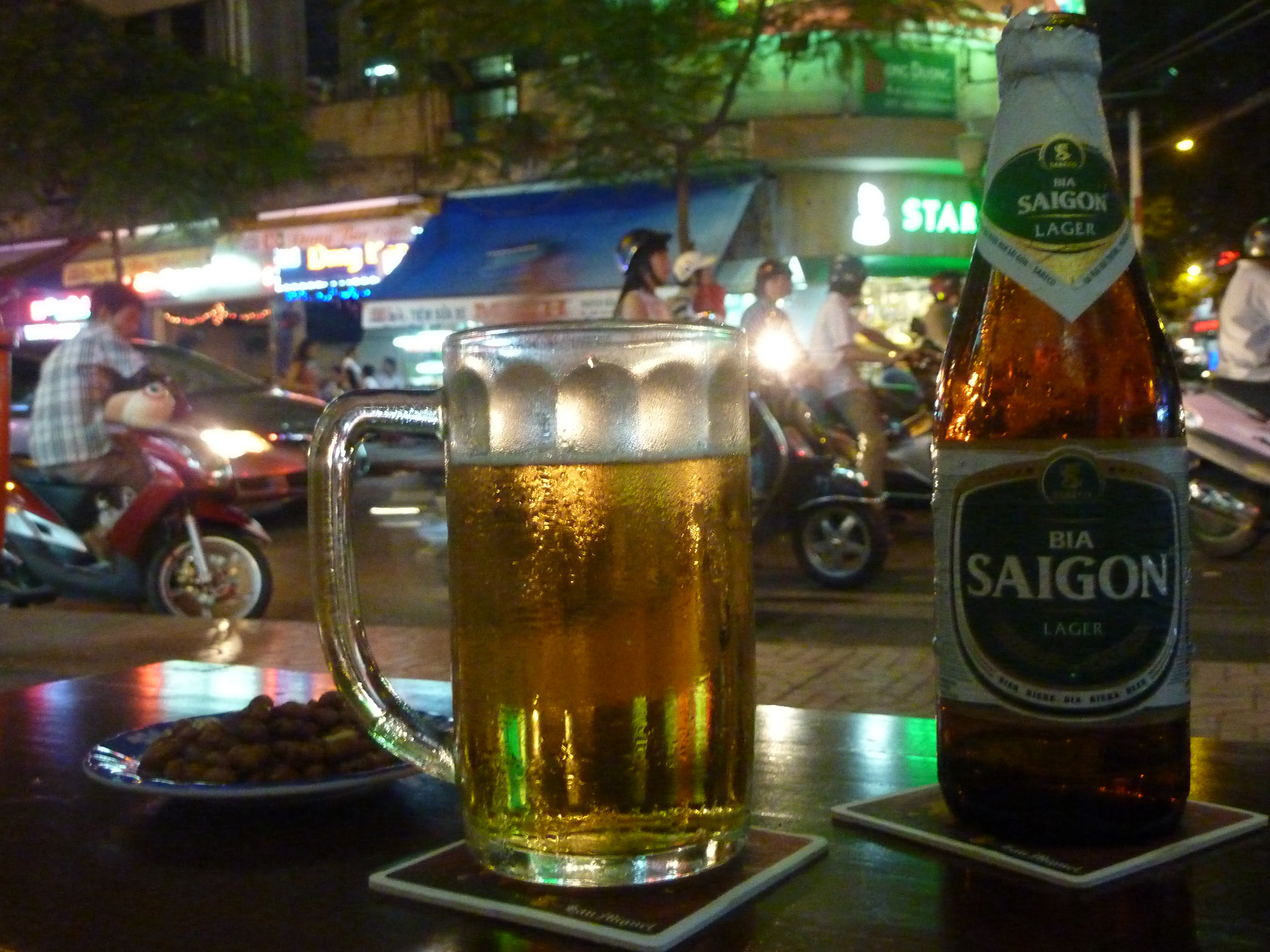 As with many cities in Southeast Asia, the streets and sidewalks in Saigon come alive at night with plenty of options for eating and drinking al fresco and, in my experience, there really isn’t a better way to enjoy a Saigon evening than getting yourself set up in a situation like this…