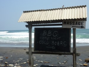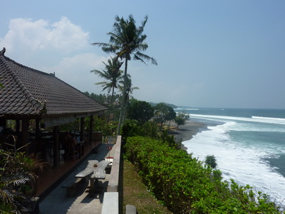 I spent my days in Balian surfing, taking long exploratory strolls on the enormous (at least at low tide) black sand beach, surfing, reading on the veranda of my sweet ocean view hut at Ibu Ayu’s Homestay, surfing, watching fishermen do their thing, surfing and eating dinners at a cool cliff side warung run by Deki and a few of his Balinese surfer buds.