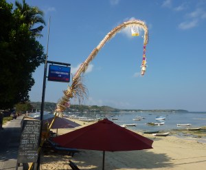 A penjor at Nusa Indah. The Balinese put up penjors to celebrate Galungan… a big festival during which the spirits of dead ancestors return to visit with the living. Cool!